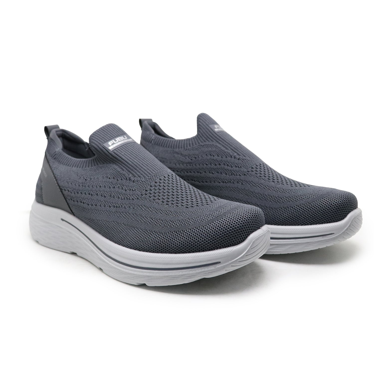 This is a pair of Fubu Cruz shoes in gray with a Flyknit upper and TPU outsole.