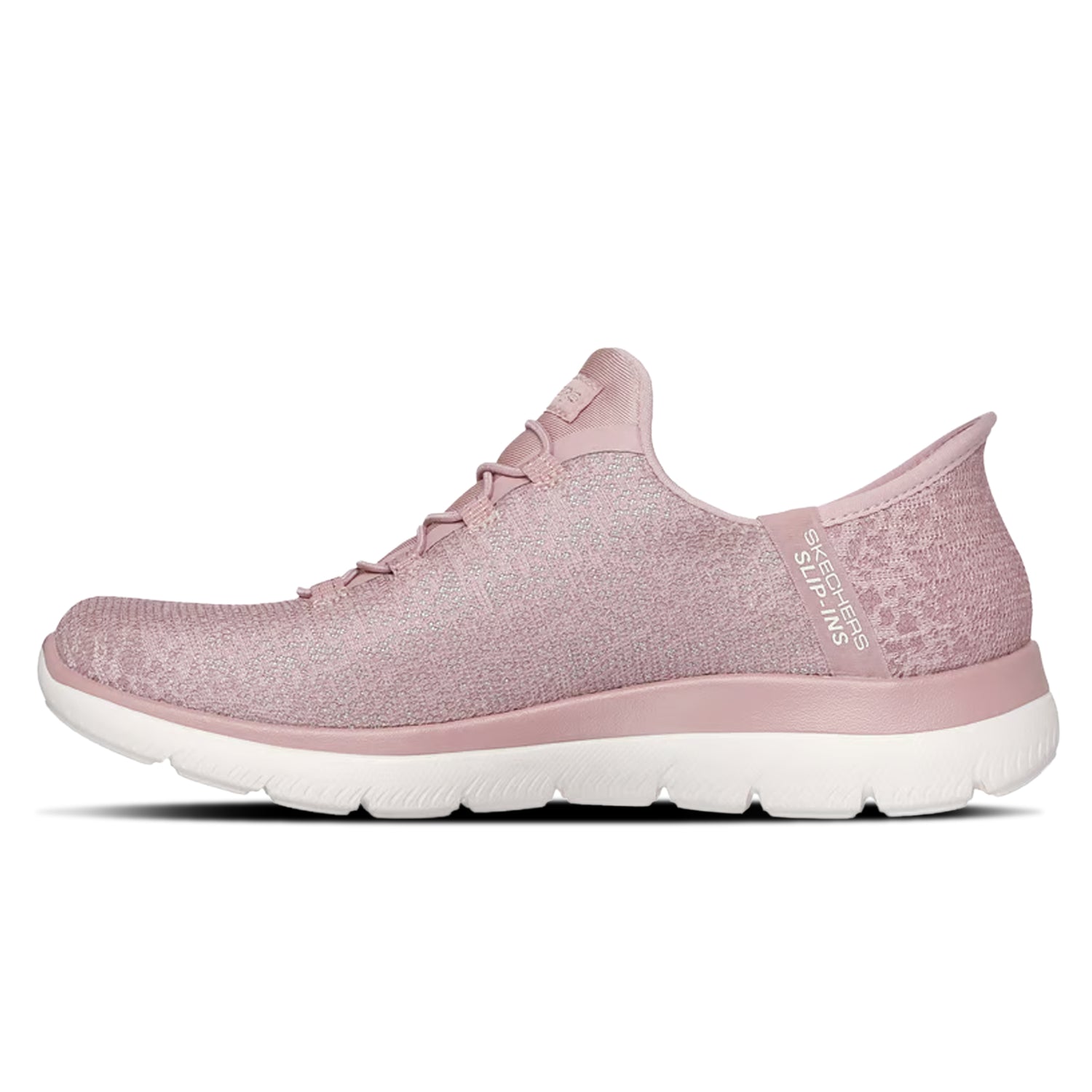 Add some shimmer to every step wearing Skechers Slip-ins®: Summits - Lunar Glow. Designed with our Heel Pillow®, this vegan slip-on features an iridescent mesh upper with fixed stretch laces and a cushioned Skechers Air-Cooled Memory Foam® comfort insole.
