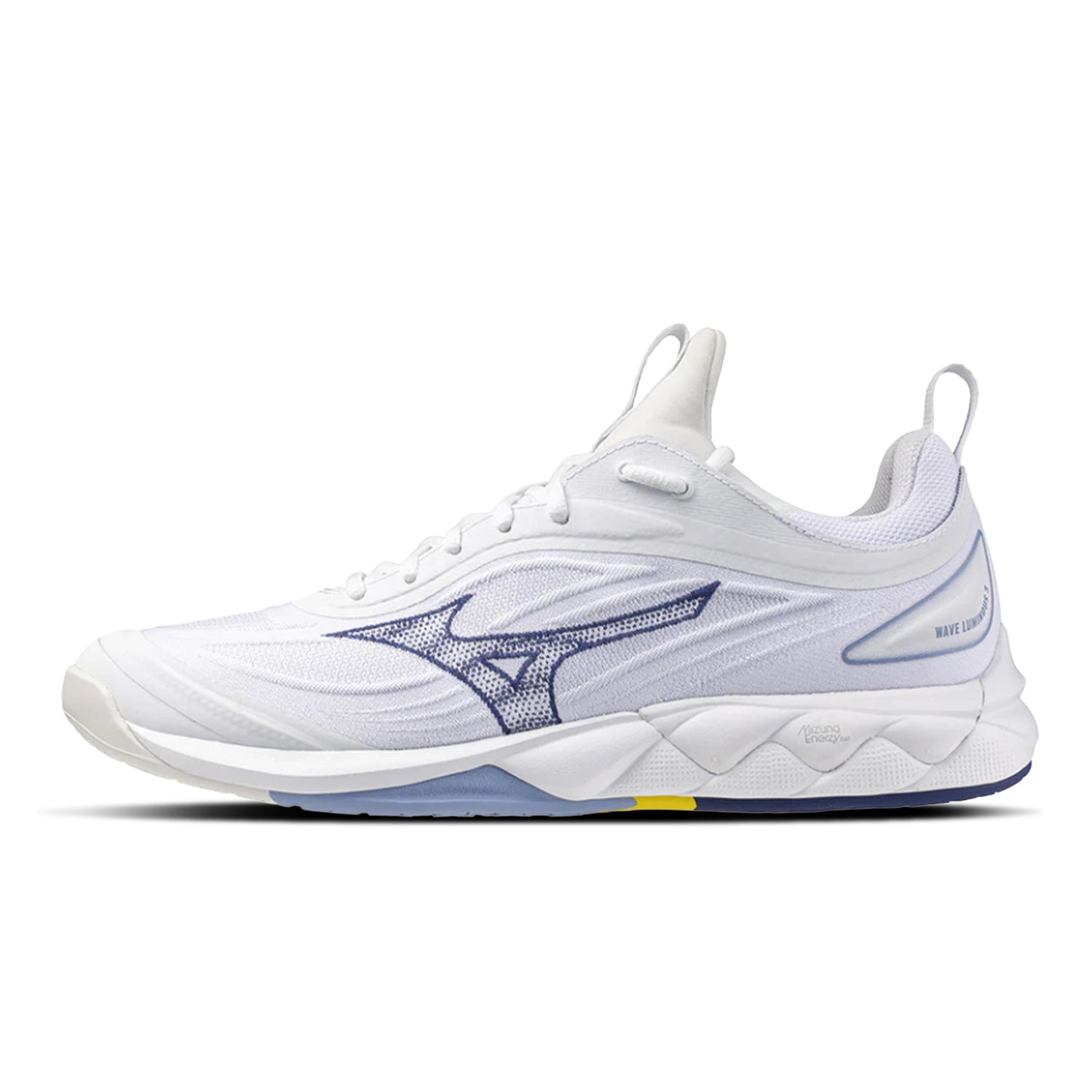 Third model of the MIZUNO WAVE LUMINOUS shoe line influenced for new levels of comfort. Equipped with MIZUNO ENERZY NXT for soft cushioning and high energy return. The shoe features a woven upper for a soft and one-to-one fit and breathability, a cup insole for a better fit, and a sole designed for grip.