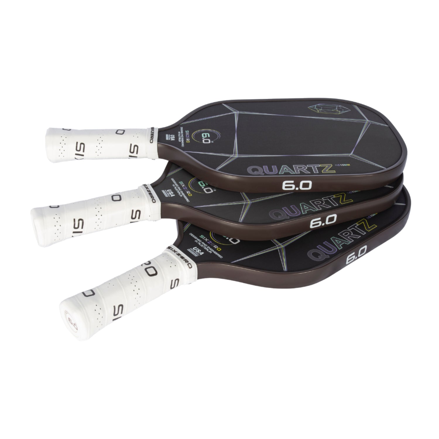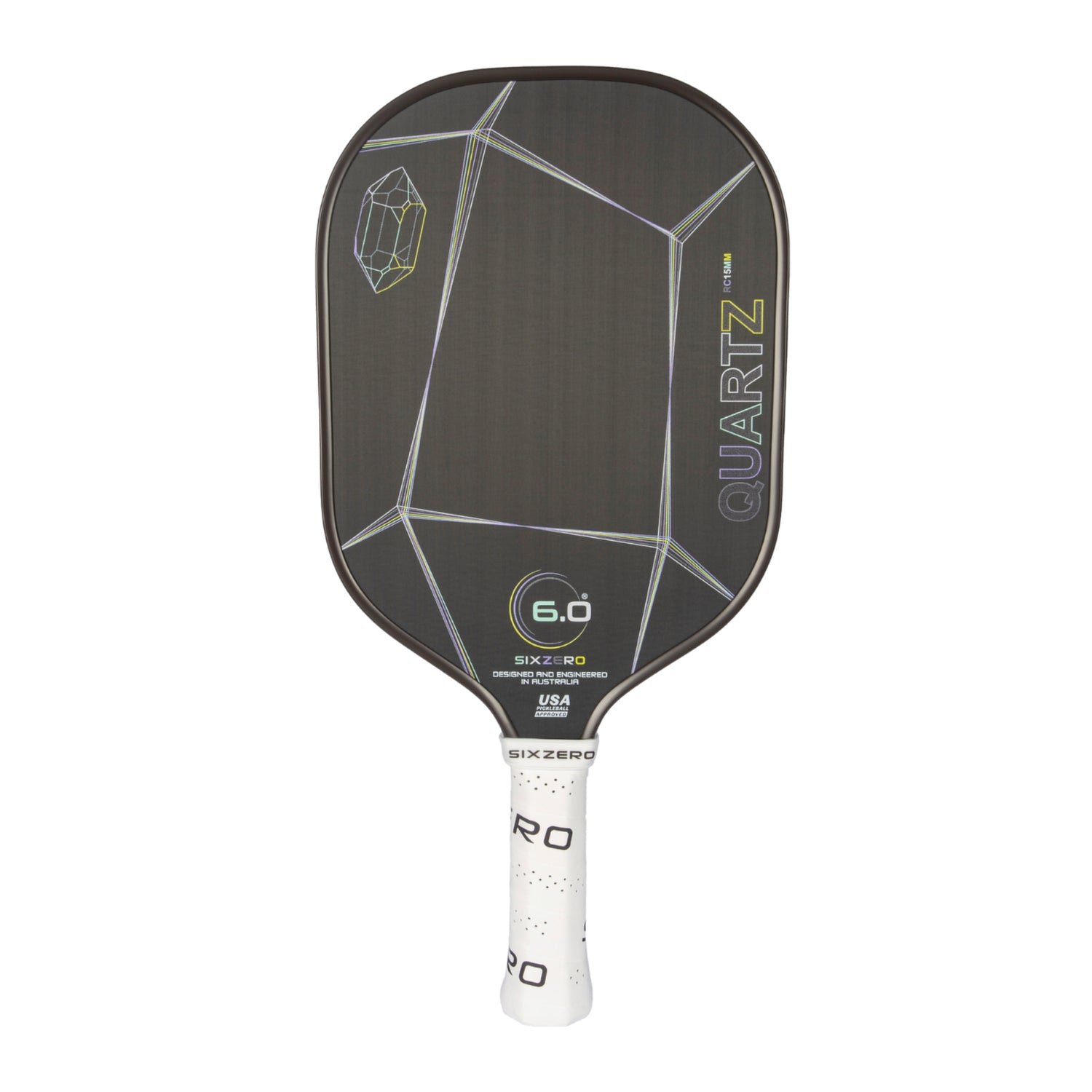 Introducing the Quartz Line of Pickleball Paddles from Six Zero Pickleball – the perfect blend of performance and affordability. Designed for players who demand quality and performance without breaking the bank, The paddle offers an accommodating all-purpose design that has a large sweet spot resulting in amplified control, generous power and pop. The Quartz has a single one-piece unibody construction that ensures durability and strength. The Quartz boasts an impressive twist weight of 6.4 guaranteeing enhanced stability and power on the court.